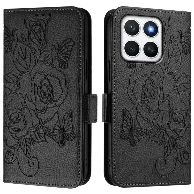 Funda de Cuero Antirrobo RFID con Relieve en Rosa para Honor X8C 4G (Negro)