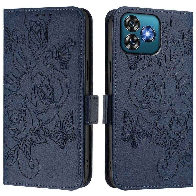 Funda de Cuero Antirrobo RFID con Relieve para Teléfono Oukitel C53 (Azul Oscuro)