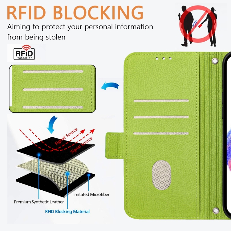 Funda de Cuero Antirrobo RFID con Relieve para Teléfono Oukitel C53 (Verde)