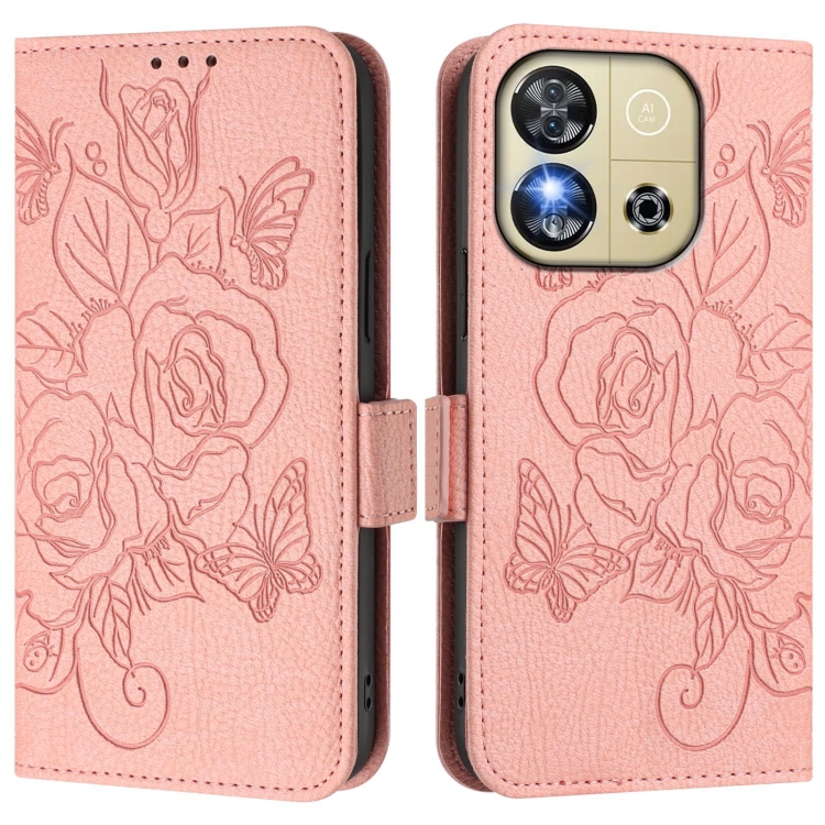 Funda Cuero Antirrobo RFID con Relieve para Teléfono Oukitel C57S (Rosa)