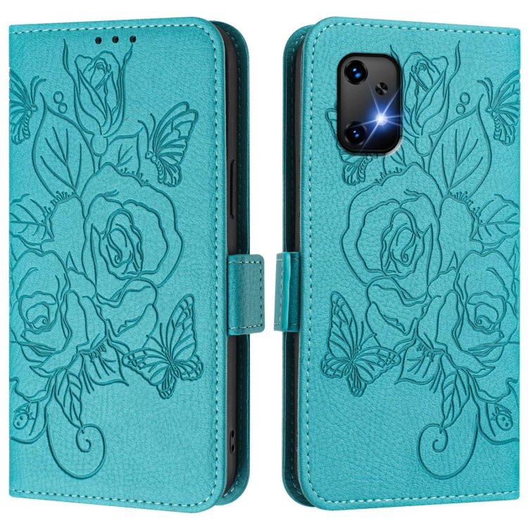 Funda de Cuero Antirrobo RFID con Relieve para Umidigi Bison X20 (Azul Claro)