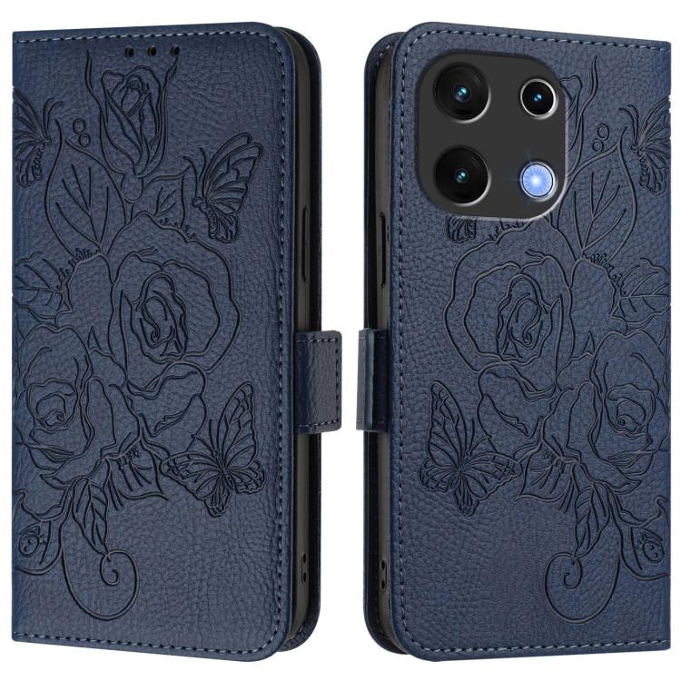 Funda de Cuero Antirrobo RFID con Relieve para Umidigi Note 100 (Azul Oscuro)
