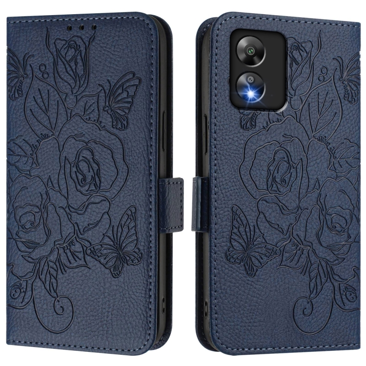 Funda de Cuero Antirrobo RFID con Relieve para Boost Mobile Celero 5G SC (Azul Oscuro)