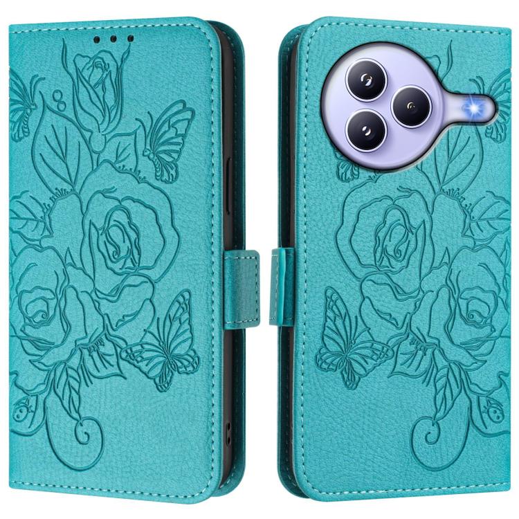 Funda de cuero antirrobo RFID con relieve rosa para Xiaomi Civi 5 Pro 5G (azul claro)