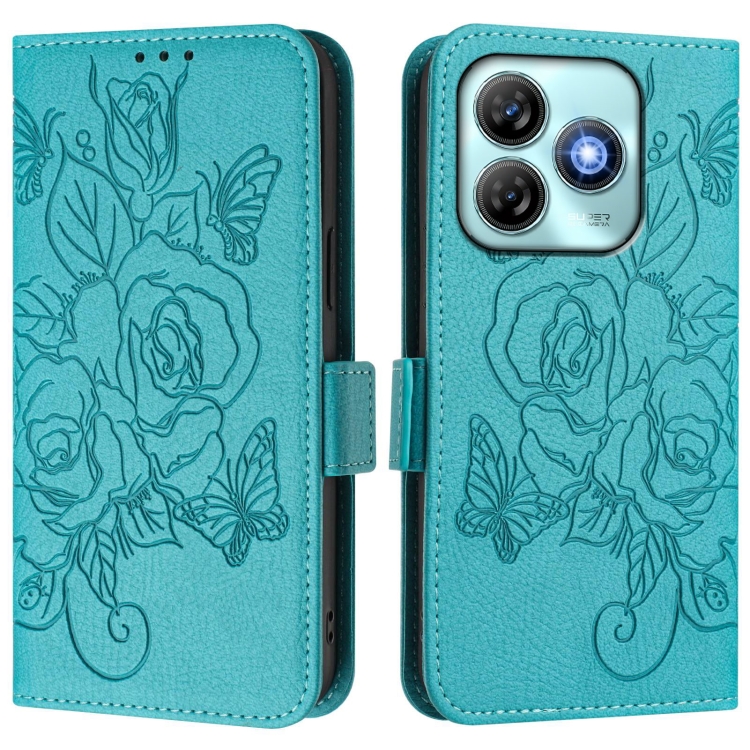 Funda de Cuero Antirrobo RFID con Relieve Rosa para ZTE Blade A75 4G (Azul Claro)