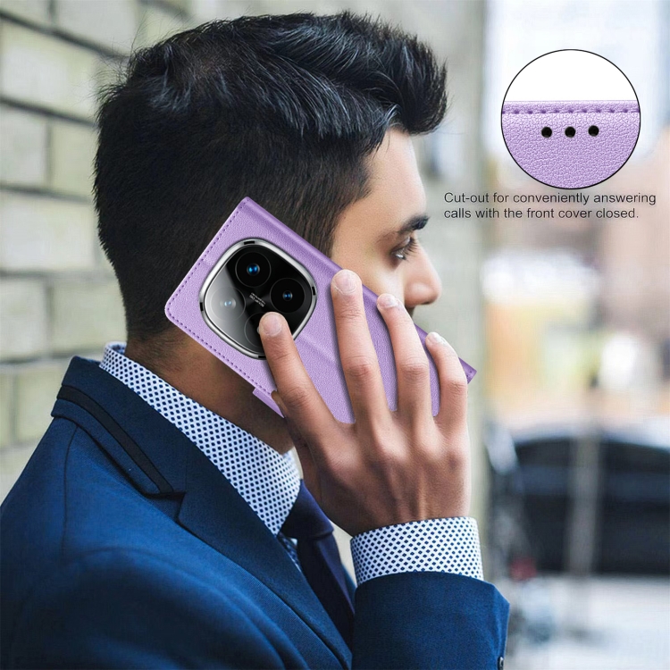 Funda de Cuero Antirrobo Rfid con Textura Litchi para Redmi Note 14 Pro / Note 14 Pro+ (Morado)