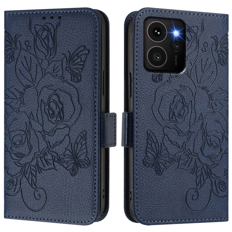 Funda Cuero Antirrobo RFID para Teléfono HMD Skyline con Relieve (Azul Oscuro)