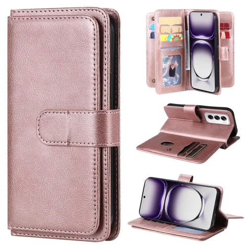 Funda de Cuero con 10 Ranuras para Tarjetas y Billetera Multifunción Global para Oppo Reno12 5G (Oro Rosa)