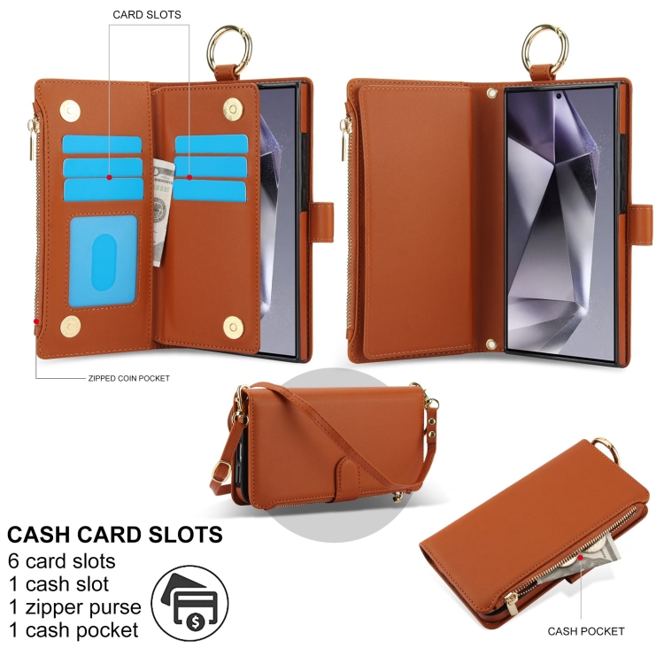 Funda Cuero Samsung Galaxy S24 Ultra 5G Anillo Cruzado Billetera (Marrón)