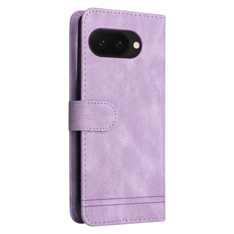 Funda de Cuero para Google Pixel 9A con Botones de Metal y Diseño Árbol de la Vida (Morado)