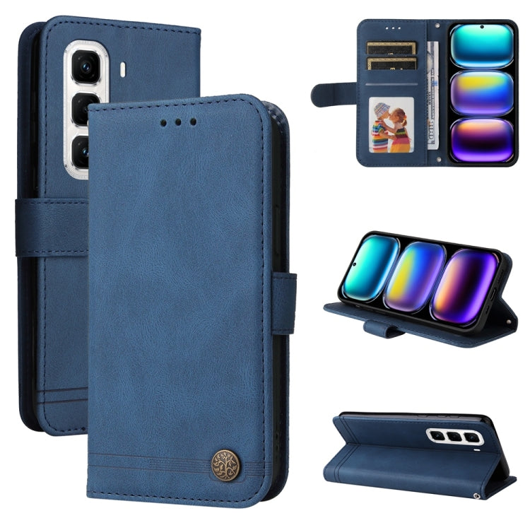 Funda de Cuero para Infinix Hot 50 Pro+ 4G con Botones de Metal y Diseño Árbol de la Vida (Azul)