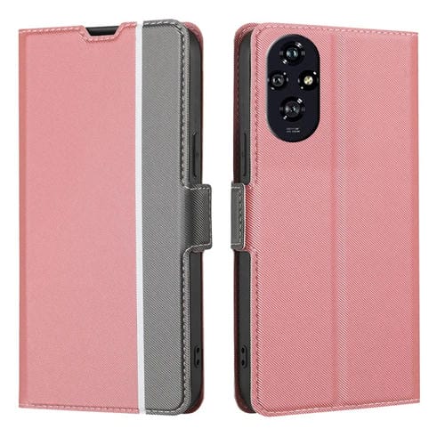 Funda de Cuero con Botones Laterales y Textura de Sarga para Honor 200 5G (Rosa)