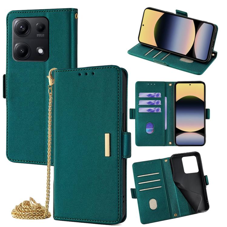 Funda de cuero con cadena cruzada para Redmi Note 14S 4G (verde)