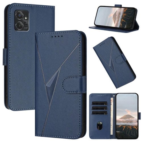 Funda de Cuero con Cierre de Hebilla y Diseño Triangular para Motorola Moto G Power 2023 (Azul Real)