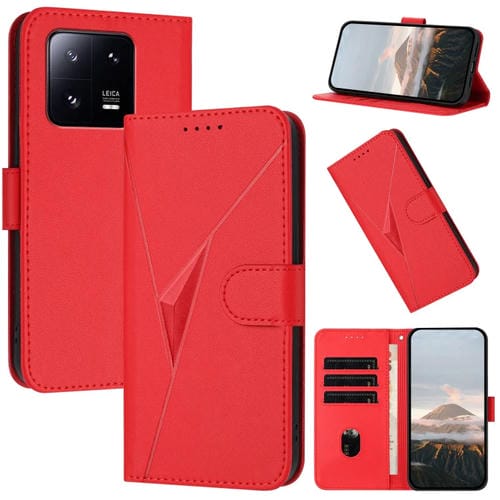Funda de Cuero con Hebilla y Diseño Triangular para Xiaomi 13 Pro (Roja)