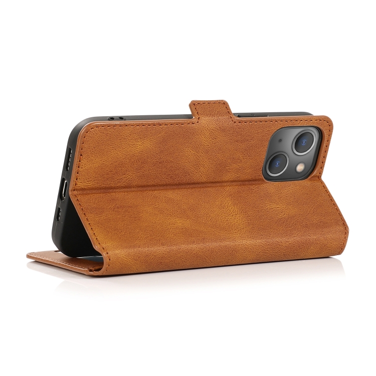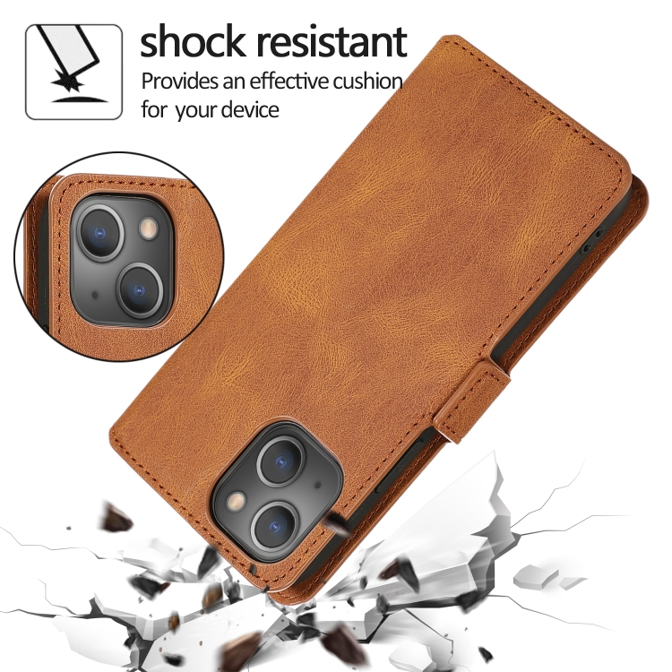Funda de Cuero para iPhone 14 con Cierre Magnético Retro (Marrón)