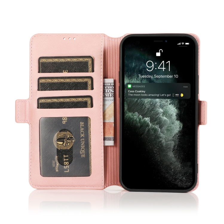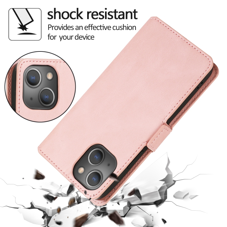 Funda de Cuero con Cierre Magnético Retro para iPhone 14 (Oro Rosa)