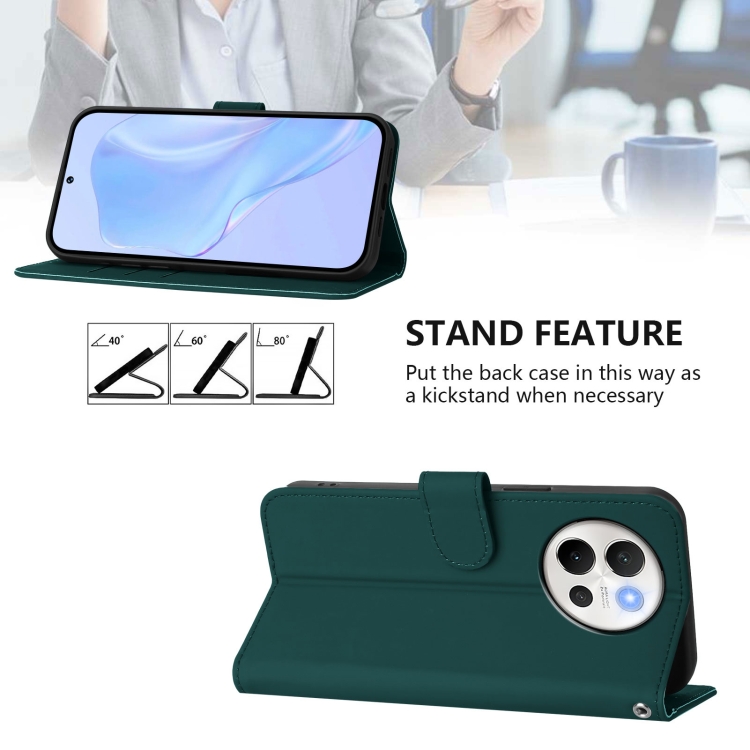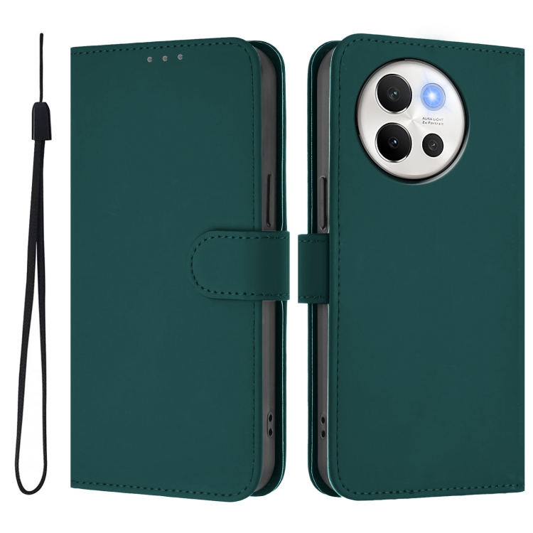 Funda de Cuero con Cordón para Teléfono con Sensación de Piel Global para Vivo V40 Lite 5G/V30E 5G (Verde Oscuro)
