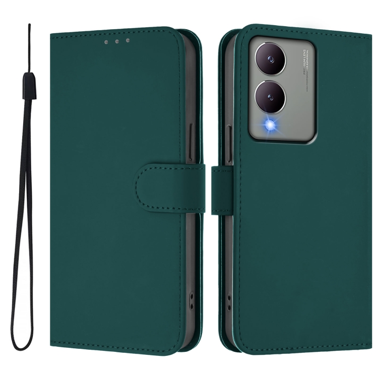 Funda de Cuero con Cordón para Teléfono con Sensación de Piel Global para Vivo Y17S 4G (Verde Oscuro)