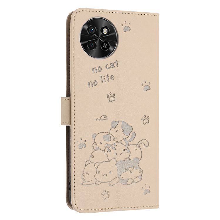 Funda de Cuero con Cordón para Teléfono Itel S23 con Gatito en Relieve (Beige)