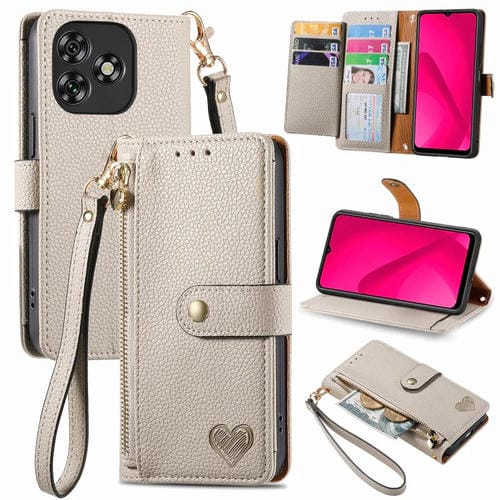 Funda de Cuero con Cordón y Cremallera Love para Oukitel C53 (Gris)