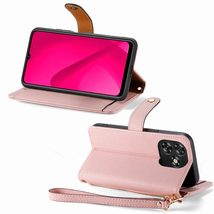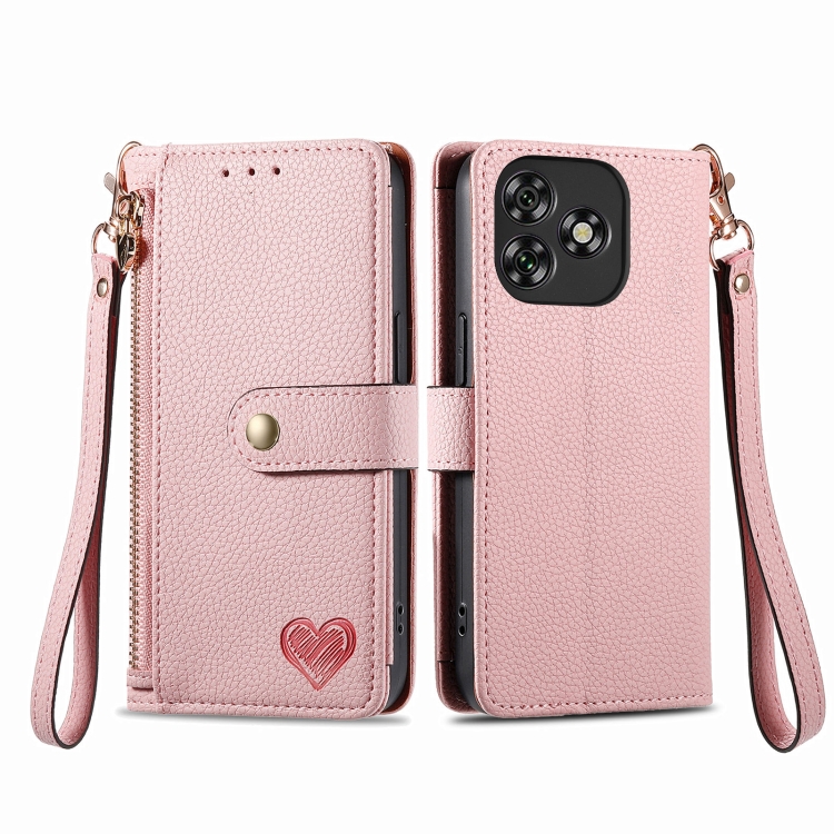 Funda de Cuero con Cordón y Cremallera Love para Oukitel C53 (Rosa)