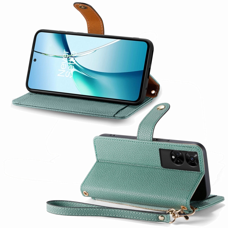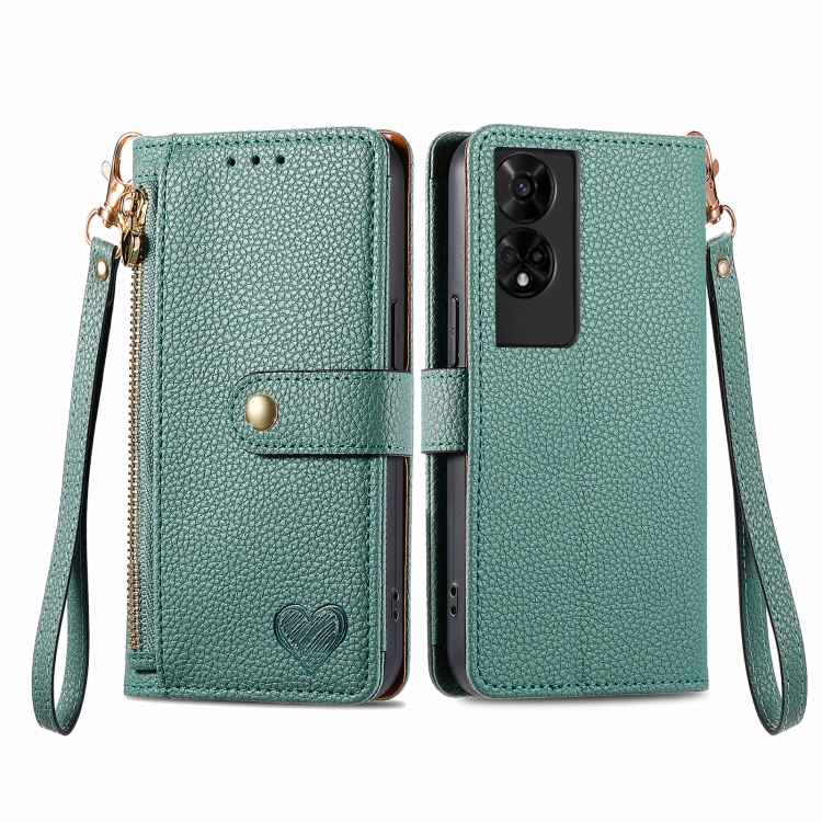 Funda de Cuero con Cordón y Cremallera Love para Teléfono TCL 50 5G (Verde)