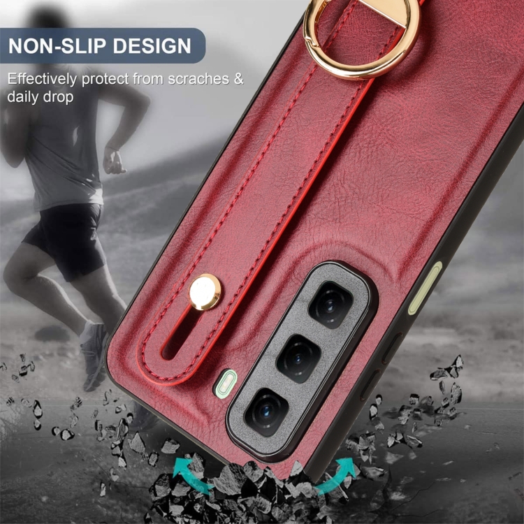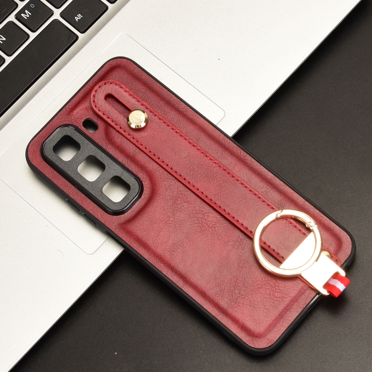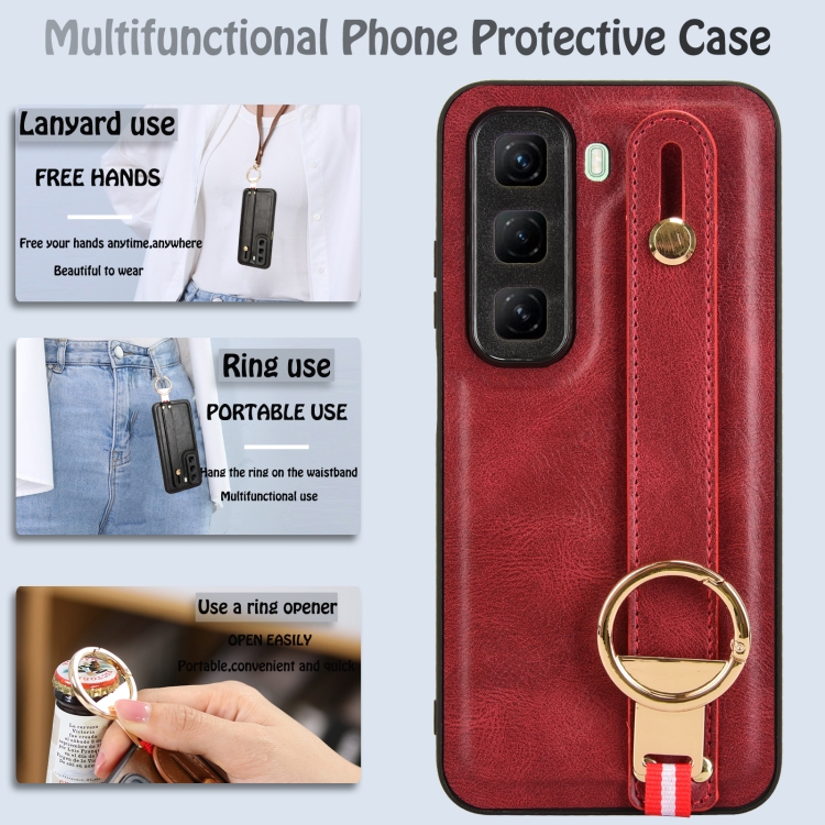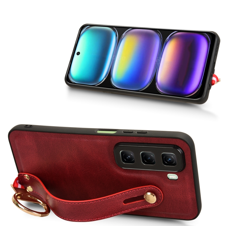 Funda de Cuero con Correa para el Cuello para Infinix Hot 50 5G (Rojo)