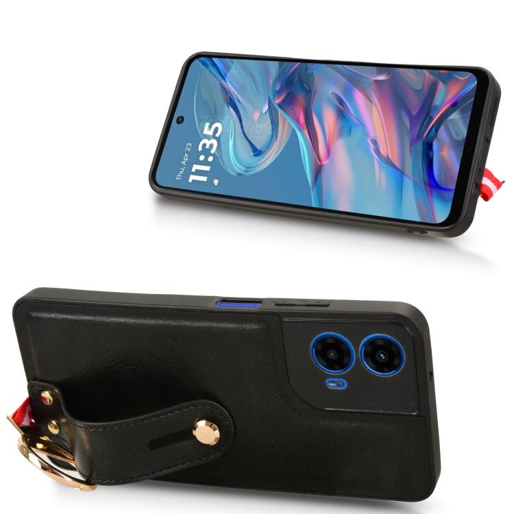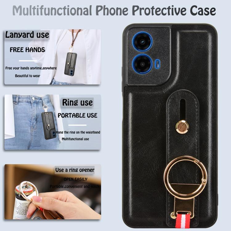 Funda de Cuero con Correa para El Cuello Motorola Moto G45 5G (Negra)
