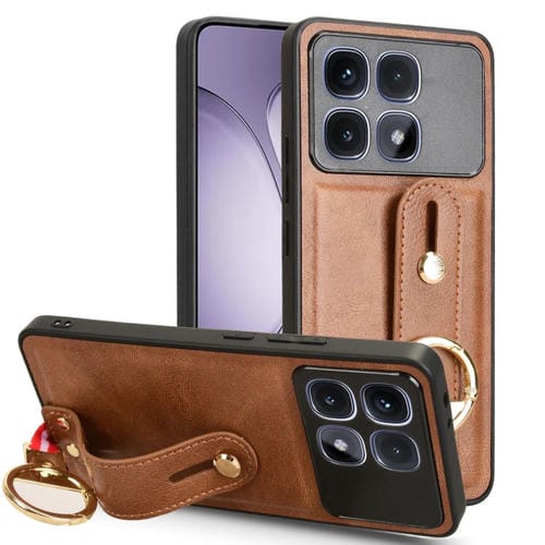 Funda de Cuero con Correa para la Muñeca para Redmi K70 Ultra (Marrón)
