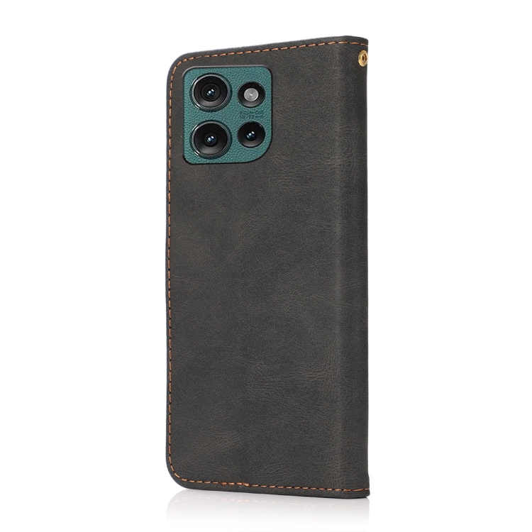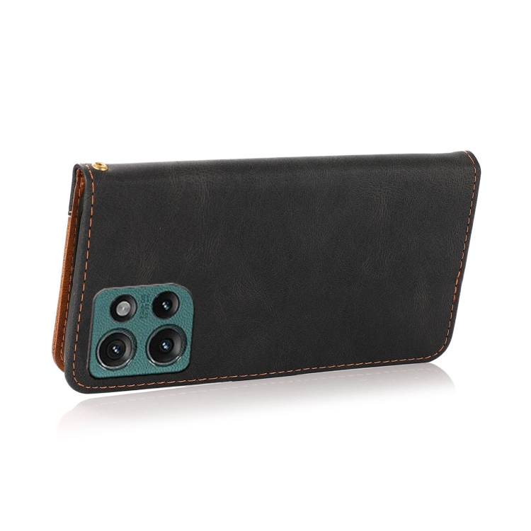 Funda de Cuero Motorola Edge 50 5G con Costuras Dos Colores (Negro y Marrón)
