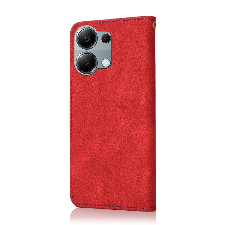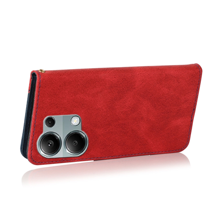 Funda de Cuero con Costuras de Dos Colores para Redmi Note 13 Pro 4G (Rojo y Azul)