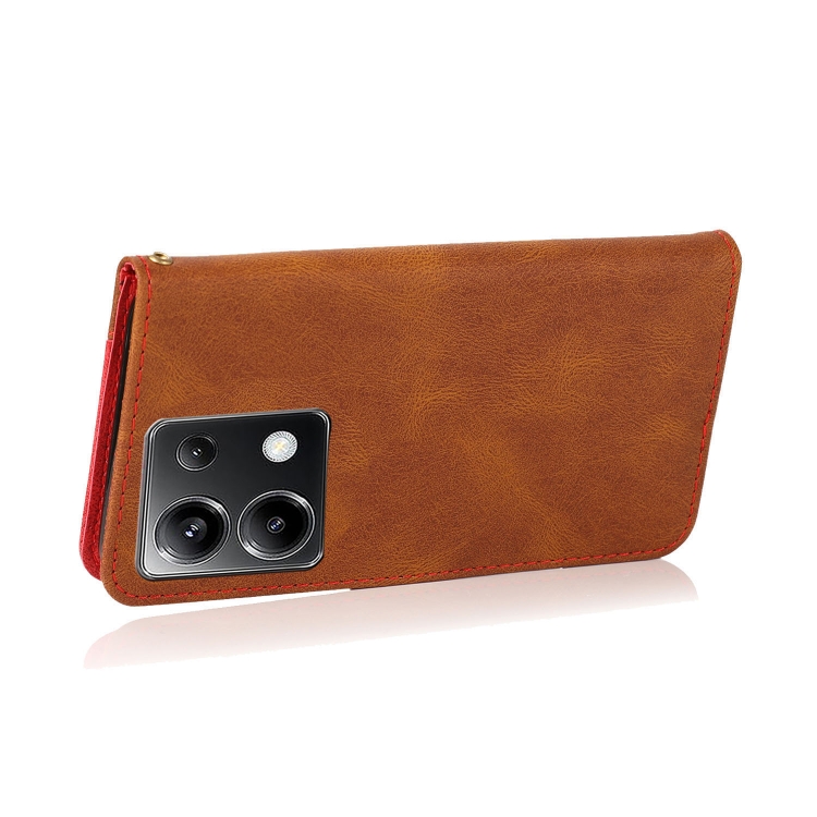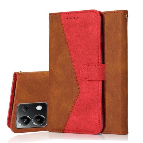 Funda de Cuero con Costuras de Dos Colores para Teléfono Xiaomi Poco X6 (Marrón y Rojo)