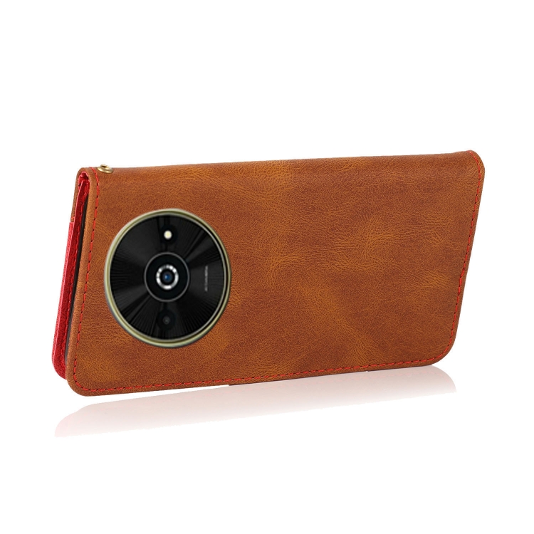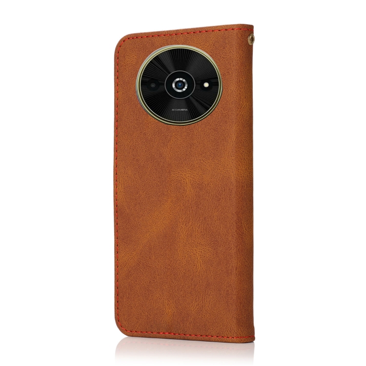 Funda de Cuero con Costuras de Dos Colores para Xiaomi Poco C61 (Marrón y Rojo)