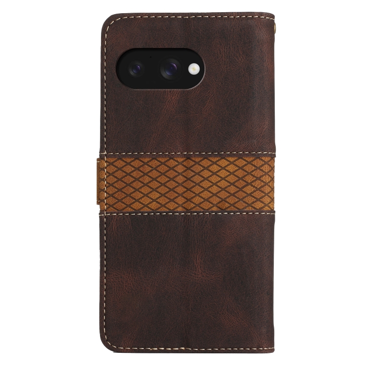 Funda de Cuero con Costuras en Cuadrícula para Google Pixel 9A con Cordón (Marrón)