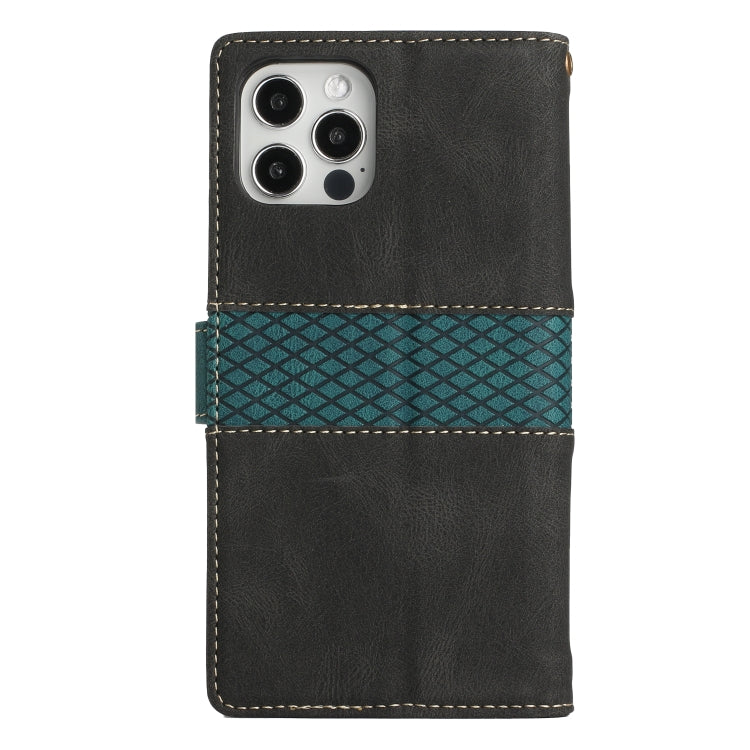 Funda de Cuero para iPhone 16 Pro Max con Costuras en Cuadrícula y Cordón (Negro)
