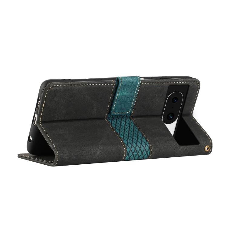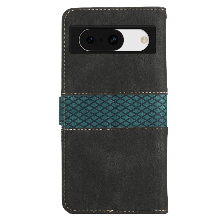 Funda de Cuero con Costuras en Cuadrícula para Google Pixel 8A con Cordón (Negro)