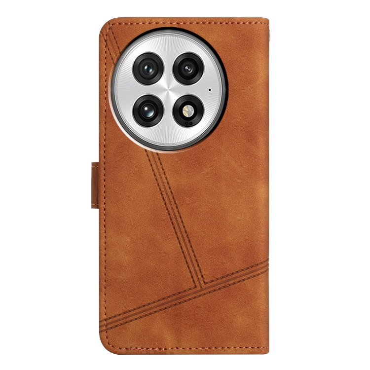 Funda de Cuero para OnePlus 13 con Costuras y Tacto Agradable (Marrón)