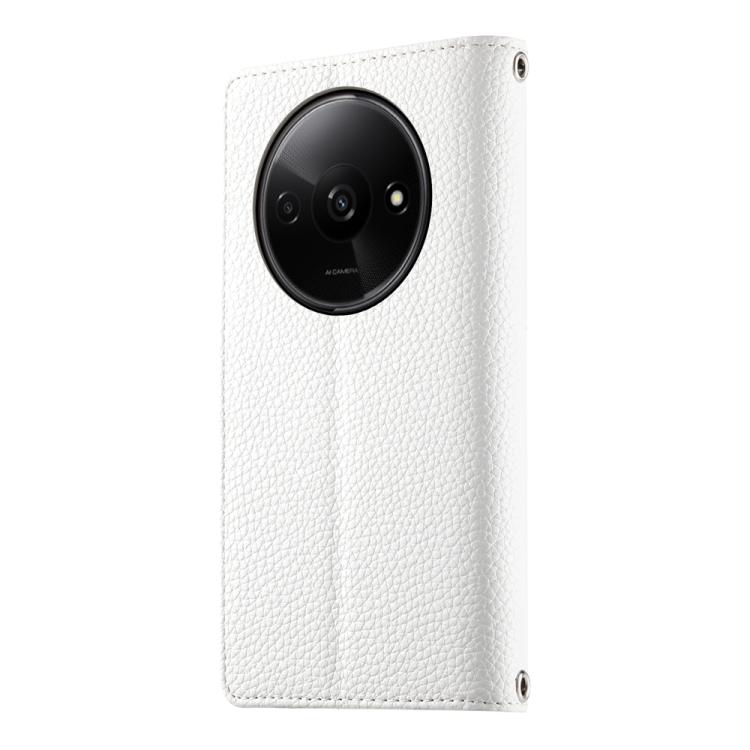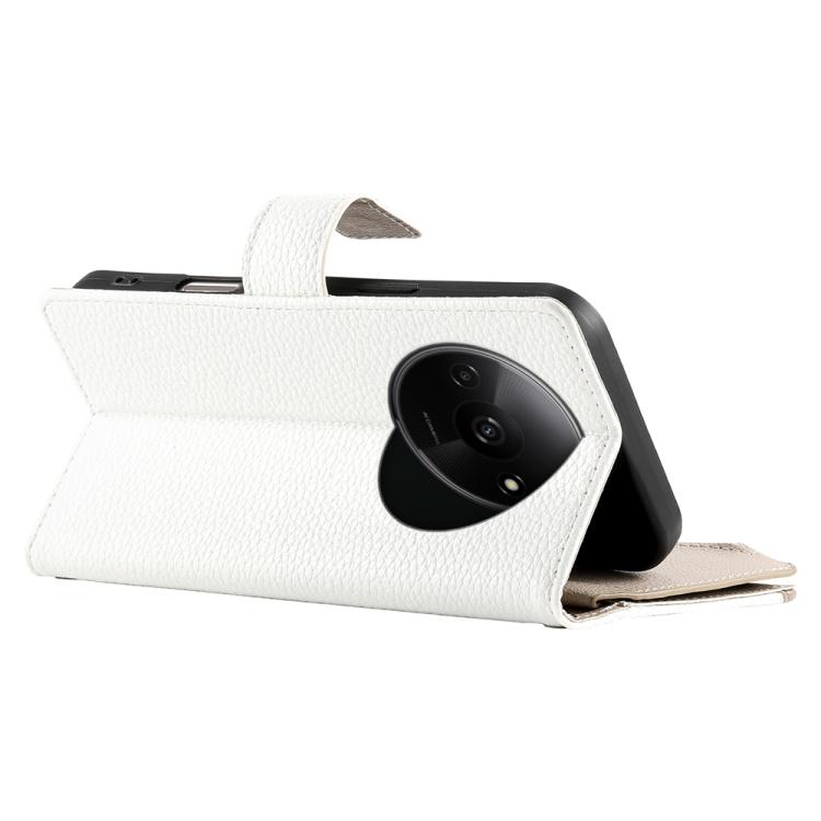 Funda de cuero con cremallera para Redmi A3 / Xiaomi Poco C61, con costuras, para múltiples tarjetas y correa corta (blanca)