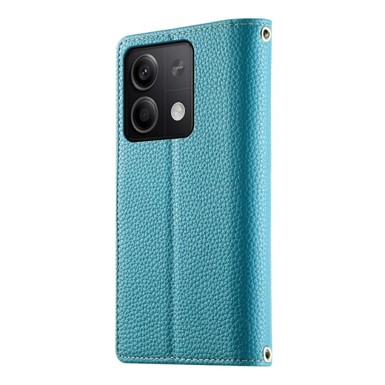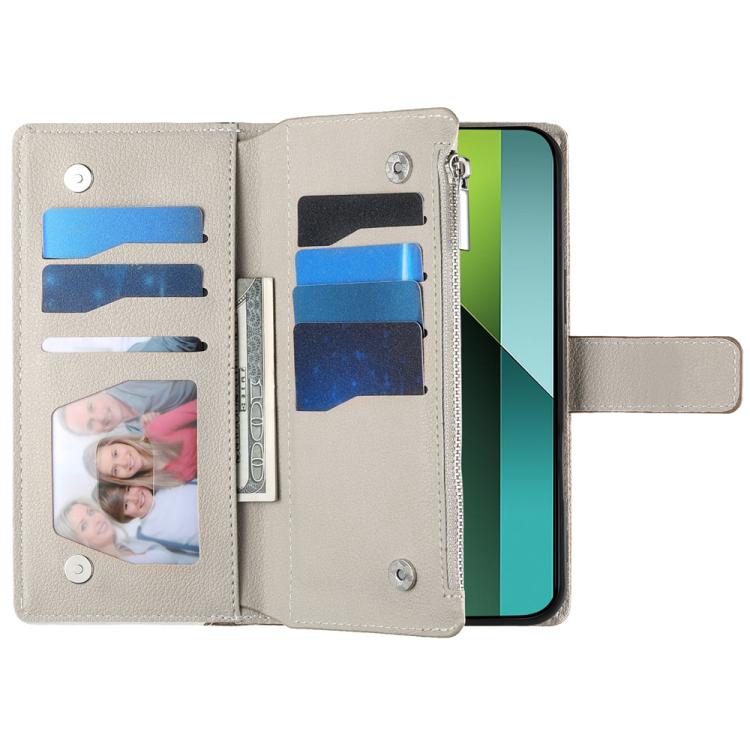 Funda de cuero con cremallera para Redmi Note 13 5G, con costuras globales, múltiples tarjetas y correa corta (azul)