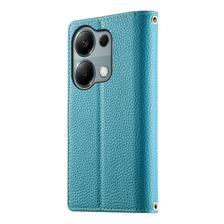 Funda de cuero con cremallera para Redmi Note 13 Pro 4G / Poco M6 Pro, con costuras, para múltiples tarjetas y correa corta (azul)