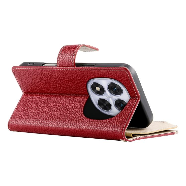 Funda de cuero con cremallera para Redmi Note 14 Pro 5G / Note 14 Pro+ 5G, con costuras, para múltiples tarjetas y correa corta (roja)