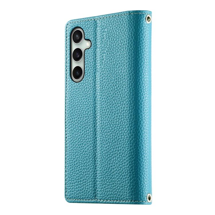 Funda de cuero con cremallera para Samsung Galaxy S24 FE 5G, con costuras, múltiples tarjetas y correa corta (azul)