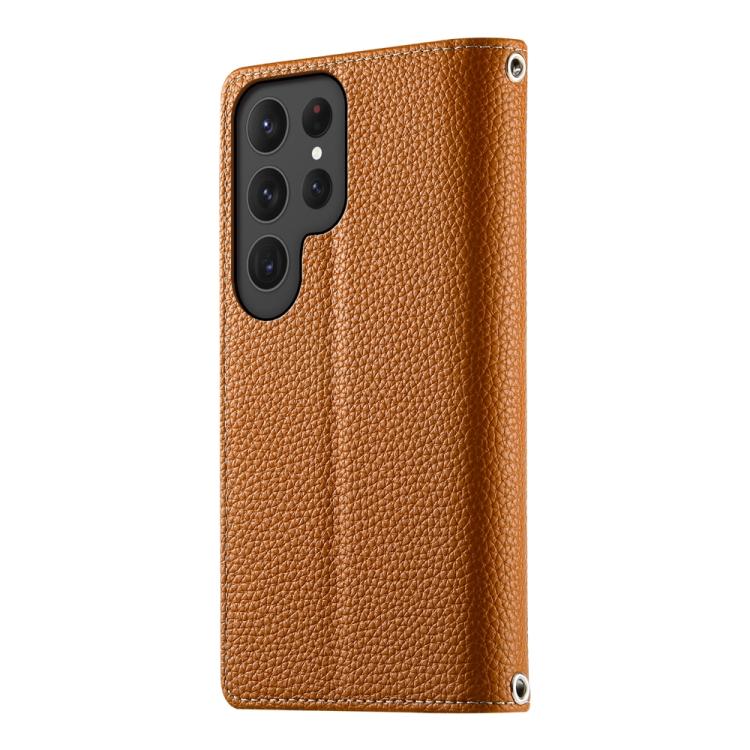 Funda de cuero con cremallera para Samsung Galaxy S25 Ultra 5G, con costuras, para múltiples tarjetas y correa corta (marrón)