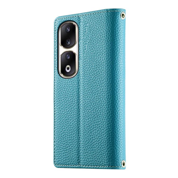 Funda de cuero con cremallera para teléfono Honor 90 Pro, con costuras, múltiples tarjetas y correa corta (azul)