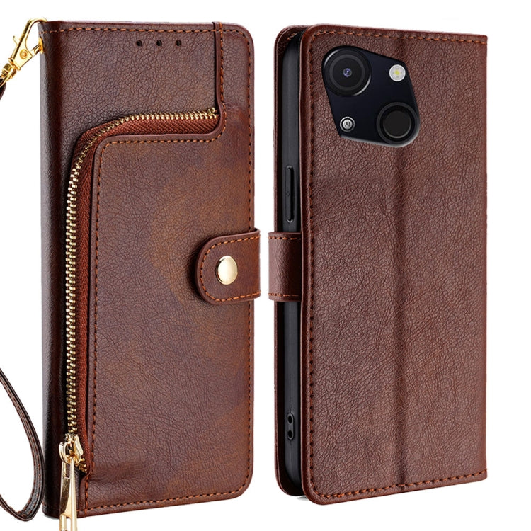 Funda de Cuero con Cremallera para Teléfono Itel A50C 4G (Marrón)