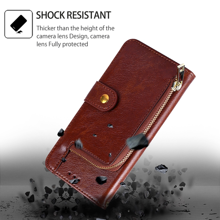Funda de Cuero con Cremallera para Motorola Edge 50 5G (Marrón)
