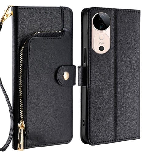 Funda de Cuero con Cremallera para Teléfono Vivo S19 (Negra)