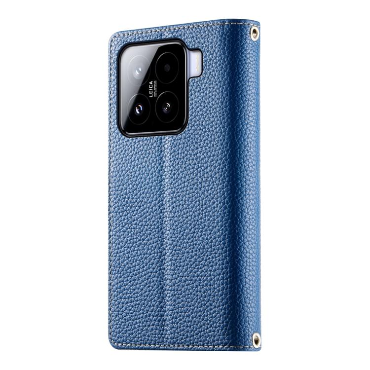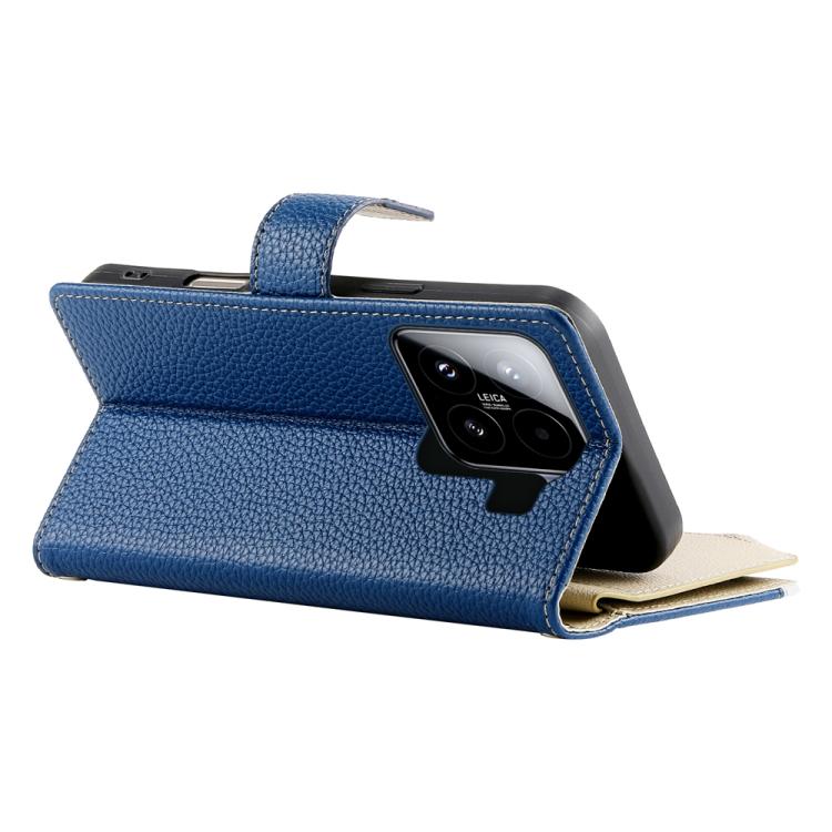 Funda de cuero con cremallera para Xiaomi 15, con múltiples tarjetas y costuras, con correa corta (azul oscuro)