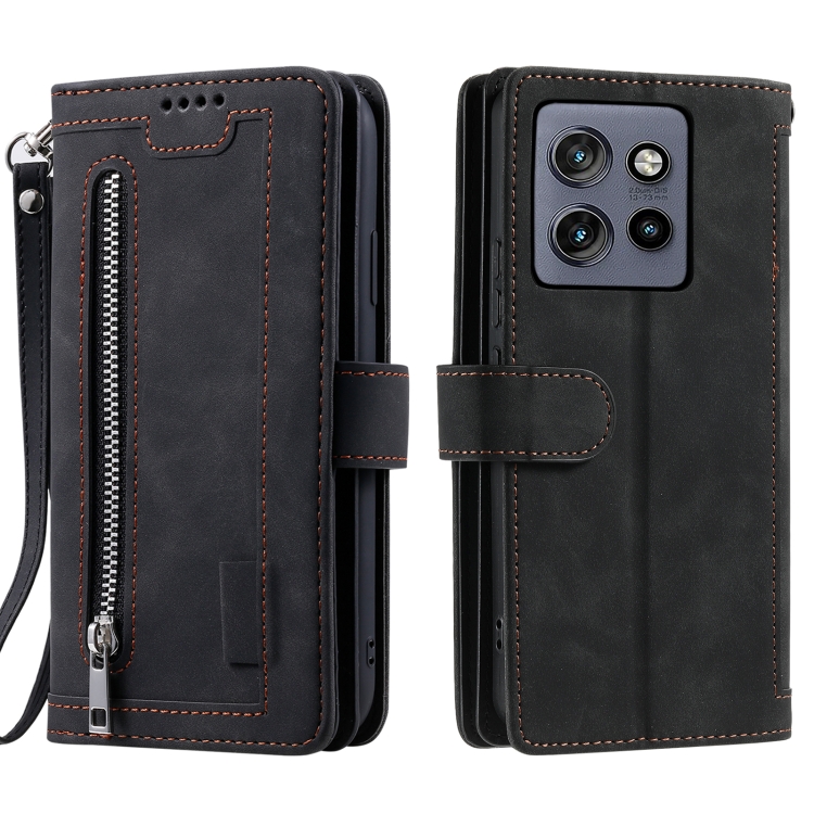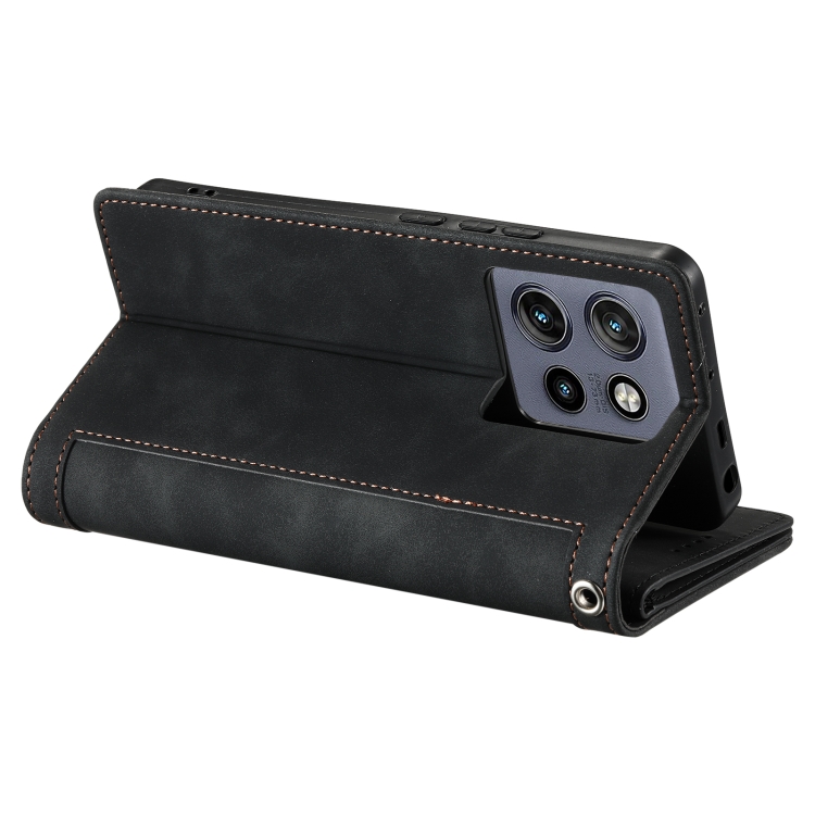 Funda de Cuero con Cremallera y Cordón para Motorola Edge 50 Neo Nine Card (Negro)